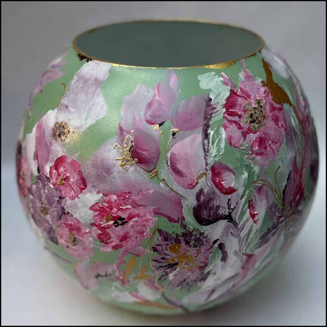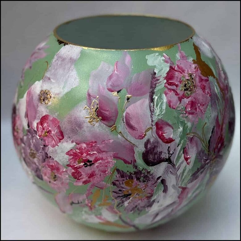 De basis van de vaas is Licht Groen, wat een perfect contrast biedt voor de levendige en verfijnde details van de decoratie.